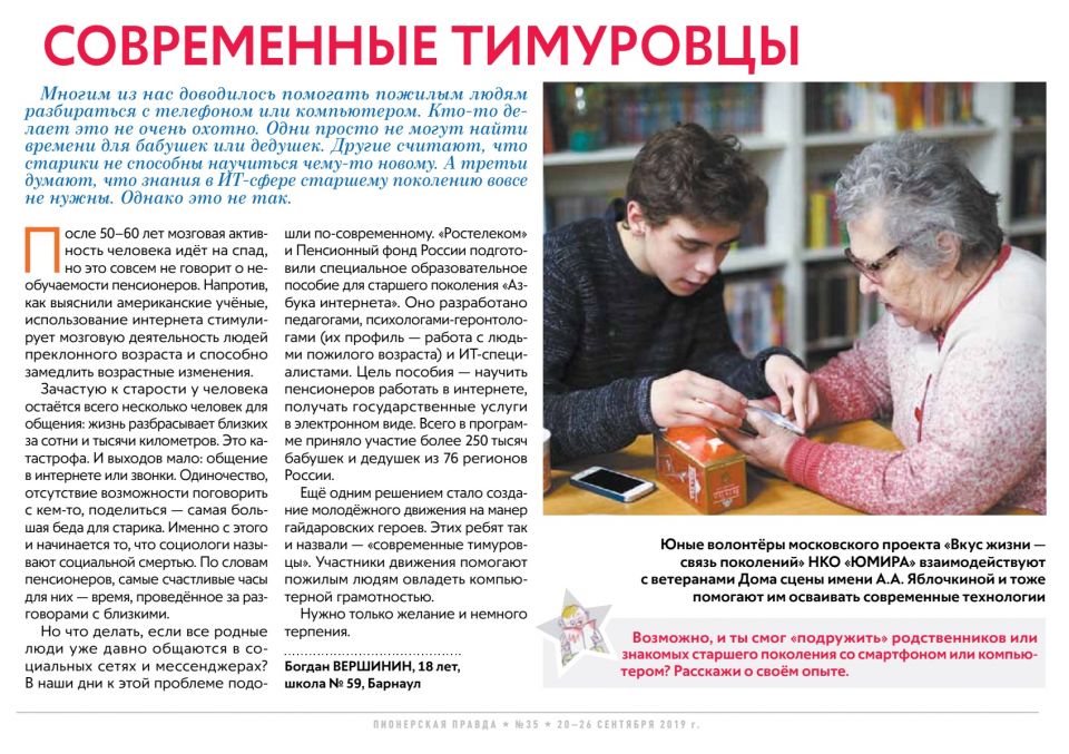 СОВРЕМЕННЫЕ ТИМУРОВЦЫ «Пионерская правда» № 35 от 20-24 сентября 2019 года https://pionerka.ru/category/nuzhno/ Скачать статью