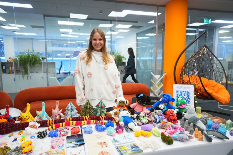 Коллекция включает свыше 150 изделий — здесь можно найти вязаные шапки и шарфы, елочные игрушки,